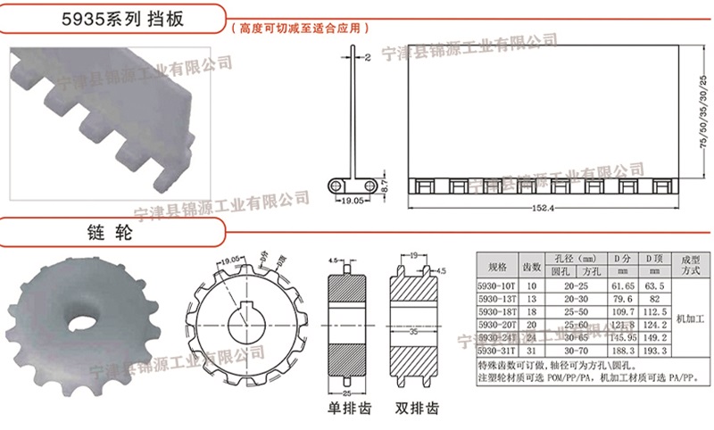 PP、POM材質(zhì)  5935型廣泛應(yīng)用在食品加工、烘干、冷卻、包裝、蓄電池、物流、水產(chǎn)類等自動(dòng)化生產(chǎn)線